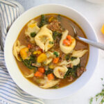 - If needed, add 1-2 cups more broth. Add in reserved sausage and tortellini and cook an additional 2-4 minutes until tortellini is cooked.